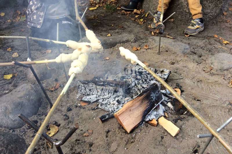 Vi laver ofte mad på bål med børnene og inddrager i det hele taget børnene i både borddækning og madlavning som pædagogisk aktivitet.